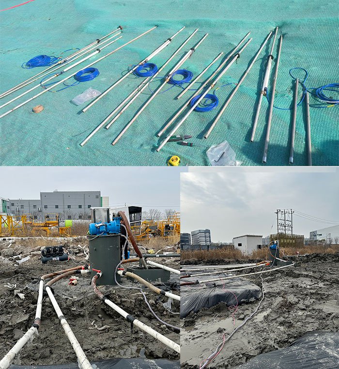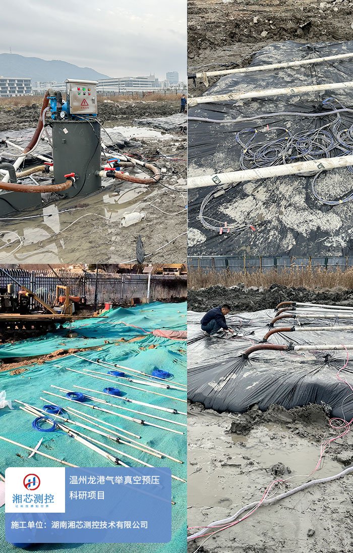 工程名称:温州龙港气举真空预压科研项目 工程地点:温州龙港 工程时间: 项目优势:真空预压法具有施工设备简单、加荷速度快、无需堆载材料、加荷过程中不会出现地基失稳 对试验区的真空度、表面沉降、超静孔隙水压力(静力水准仪、分层沉降计、高精度水位计、渗压计)等监测数据进行分析